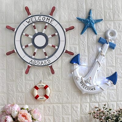 Whether it's beach, nautical or coastal decor, bella coastal has it all! Hampton nautical wood rustic blue red white anchors set, wooden anchor decor, anchor wall decor, wooden blue red and white anchor home décor, perfect hanging decors for home. The tall sails are a soft white linen that attach by metal hooks on the boat. Bedding, lighting, rugs, furniture, décor, wall hangings, bath Free shipping on orders over $25 shipped by amazon.